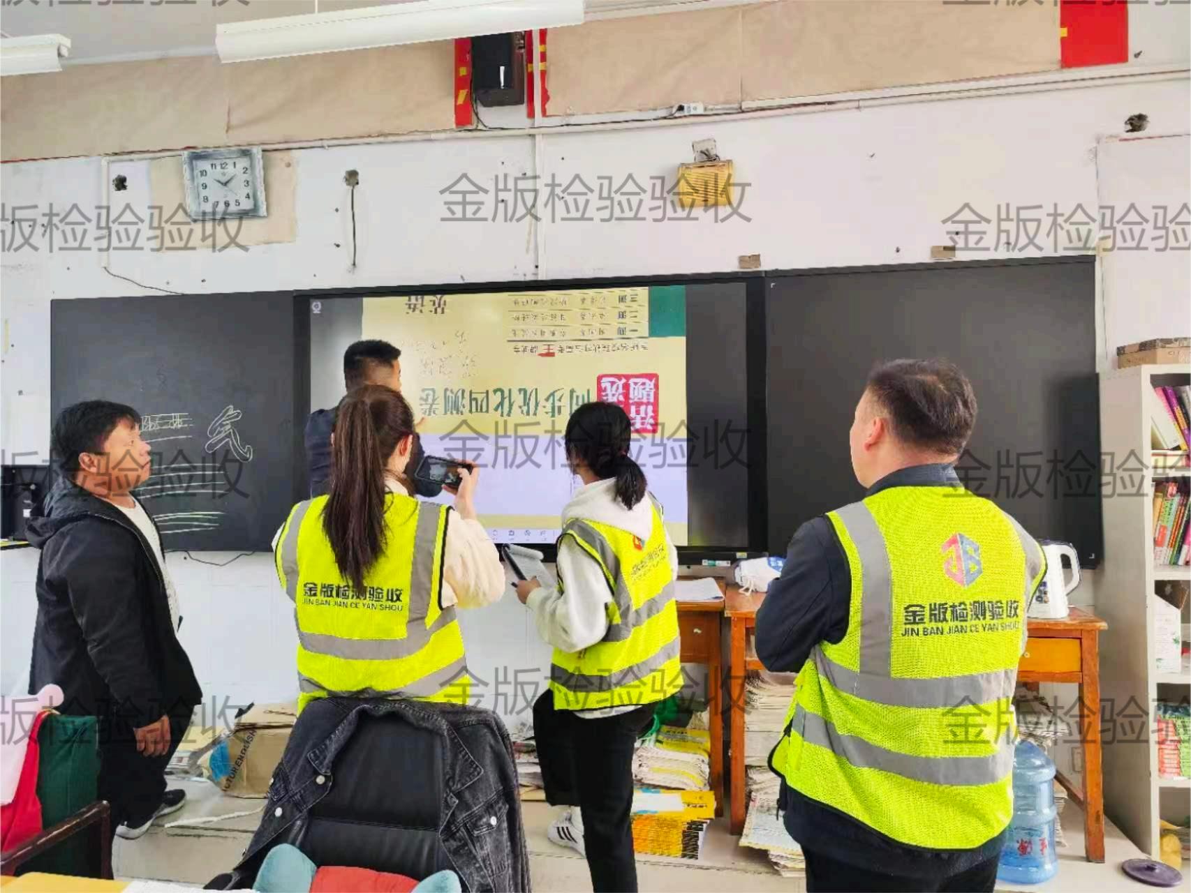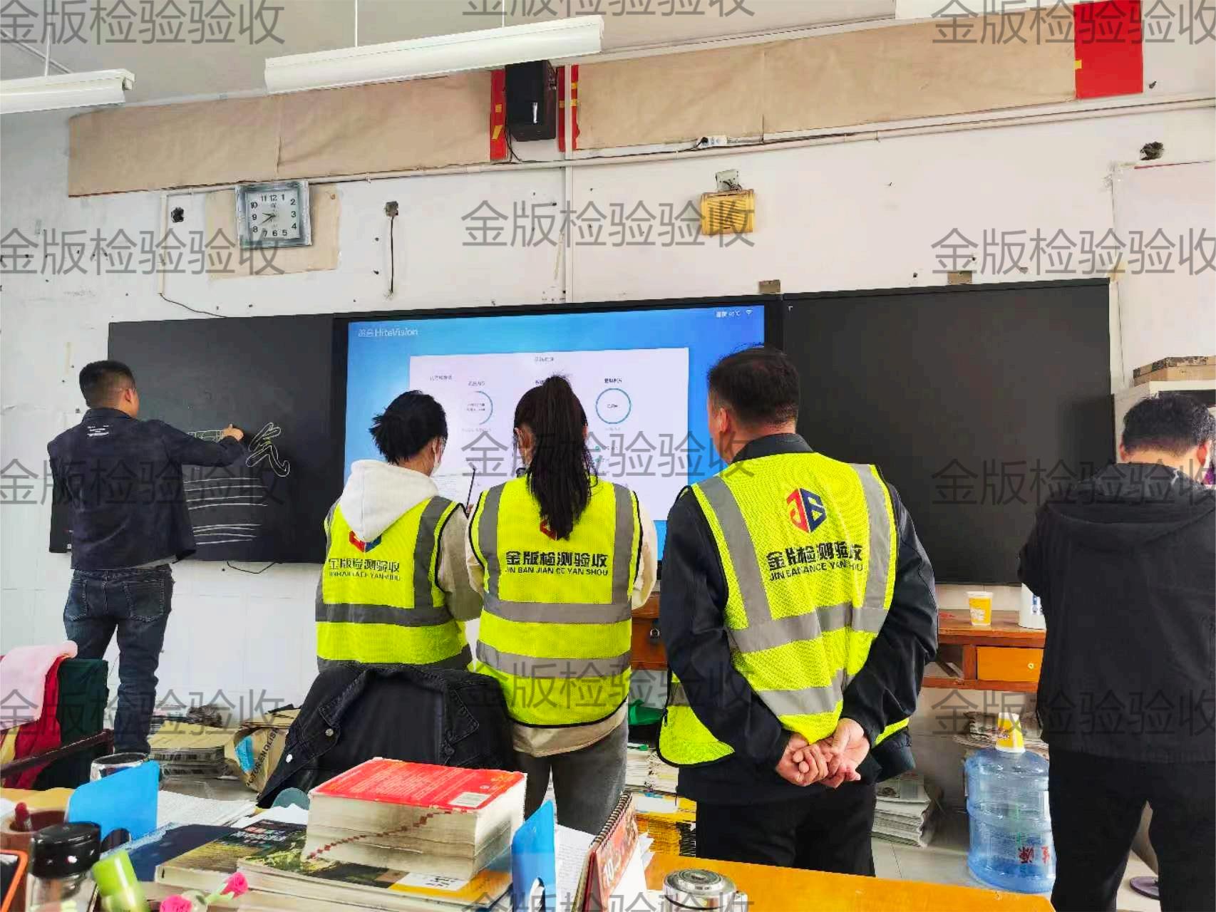 金版检测验收团队在濮阳某校方的邀请下,专业又严谨的对学校的教育装备进行严格的验收工作。