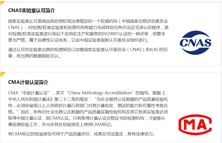 类别 | CMA 计量认证 | CNAS 实验室认可 |